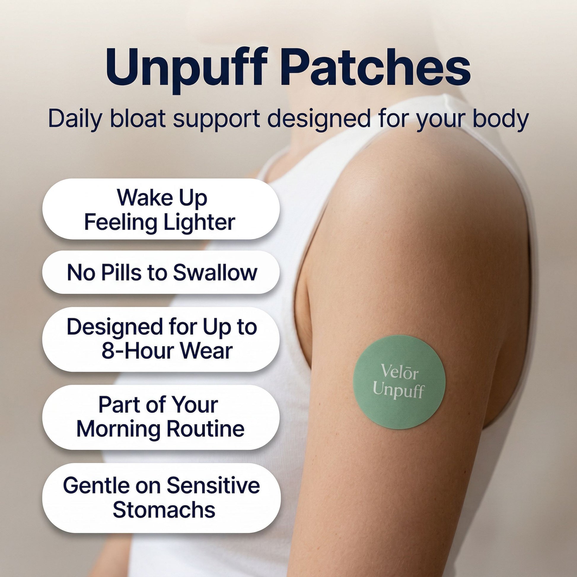 Bloating affects millions of people every single day — and most solutions involve swallowing more pills on an already upset stomach. Velōr Unpuff Patches deliver plant-based digestive support through the skin, bypassing your digestive tract entirely.